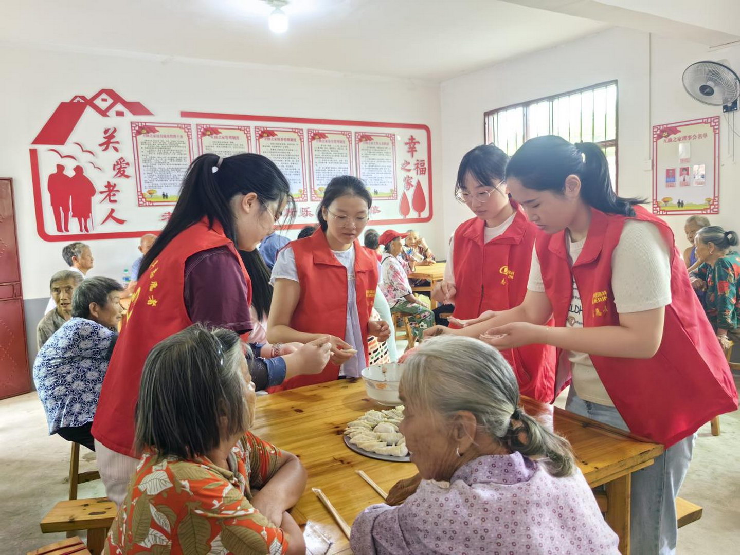 在罗塘村互助养老之家,志愿者们主动拿起工具清扫庭院、整理房间,用行动焕新老人们的生活环境。他们俯身为老人修剪指甲,手把手教老人使用智能手机,围坐在一起倾听岁月故事、排解生活孤寂。联合当地乡村医生开展的健康义诊活动中,志愿者们细致为老人测量血压、血糖,耐心普及健康知识,并叮嘱日常饮食与作息注意事项,用心守护老人们的身体健康。之后,志愿者与老人们围坐包饺子,笑语欢声伴着腾腾热气,温情在方寸之间悄然传递,勾勒出一幅文明志愿的暖心画卷。