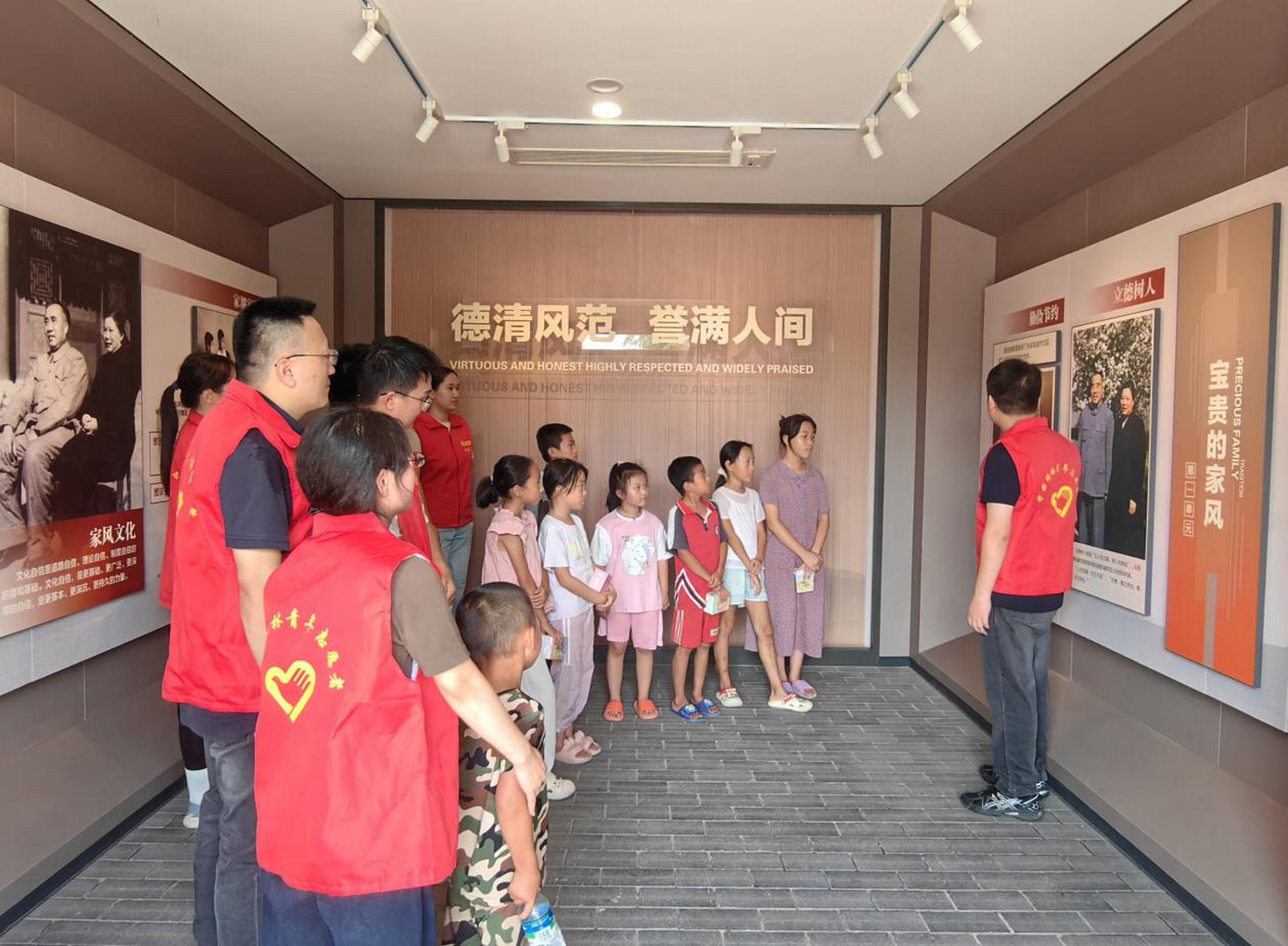 留守儿童关爱环节同样暖意融融。青年志愿者化身“大朋友”,与孩子们开展趣味游戏、分享红色故事,清脆的笑声与激昂的讲述让活动现场活力满满。随后,志愿者们带领孩子们走进红色罗塘景区主题展区,在一幅幅历史图片、一件件革命文物前,共同追溯无产阶级革命家康克清矢志不渝的革命历程,感受红色信仰的力量?;疃?,青年志愿者还为孩子们送上精心准备的学习文具与文体用品,助力他们在成长路上健康快乐成长。此外,志愿者们还与部分留守儿童现场“一对一”结对子,未来将通过常态化学习辅导、心理疏导与情感陪伴,让孩子们在长期关怀中真切感受到社会大家庭的温暖。