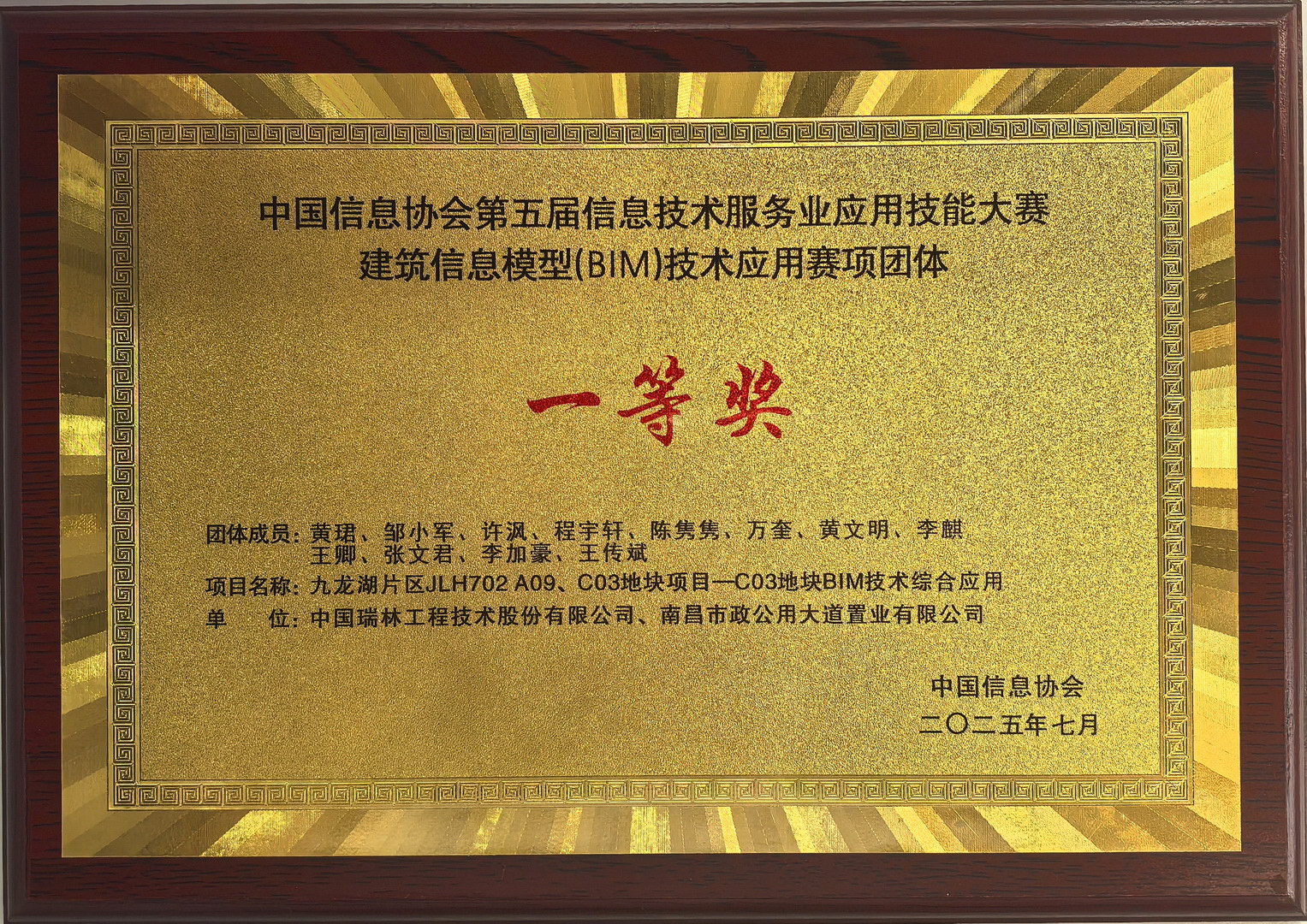 近日,在第三届信息技术服务产业发展论坛暨中国信息协会第五届信息技术服务业应用技能大赛颁奖典礼上,由中国瑞林建筑设计研究院牵头,联合南昌市政公用大道置业有限公司共同申报的“九龙湖片区JLH702A09、C03地块项目-C03地块BIM技术综合应用”成果,从全国5000余项入围成果中脱颖而出,最终斩获建筑信息模型(BIM)技术应用赛项团体一等奖的佳绩。